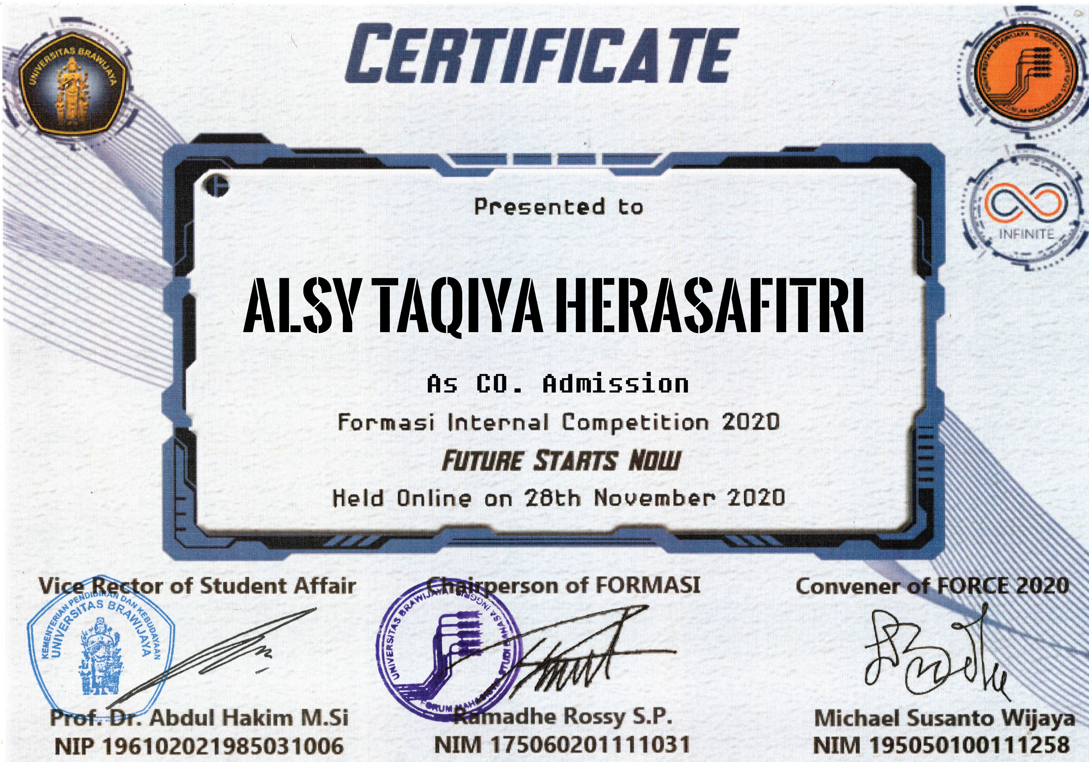 Coordinator of Admission Team in Formasi Internal Competition 2020