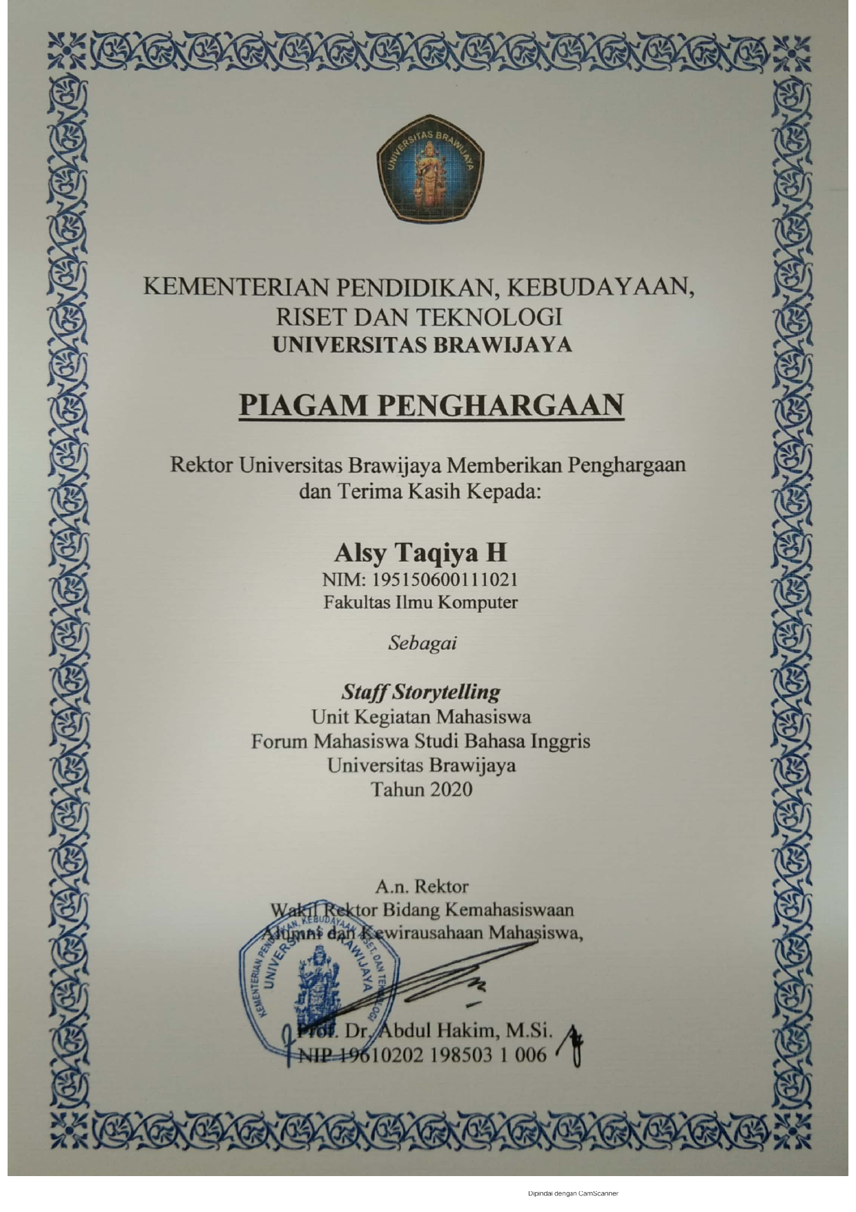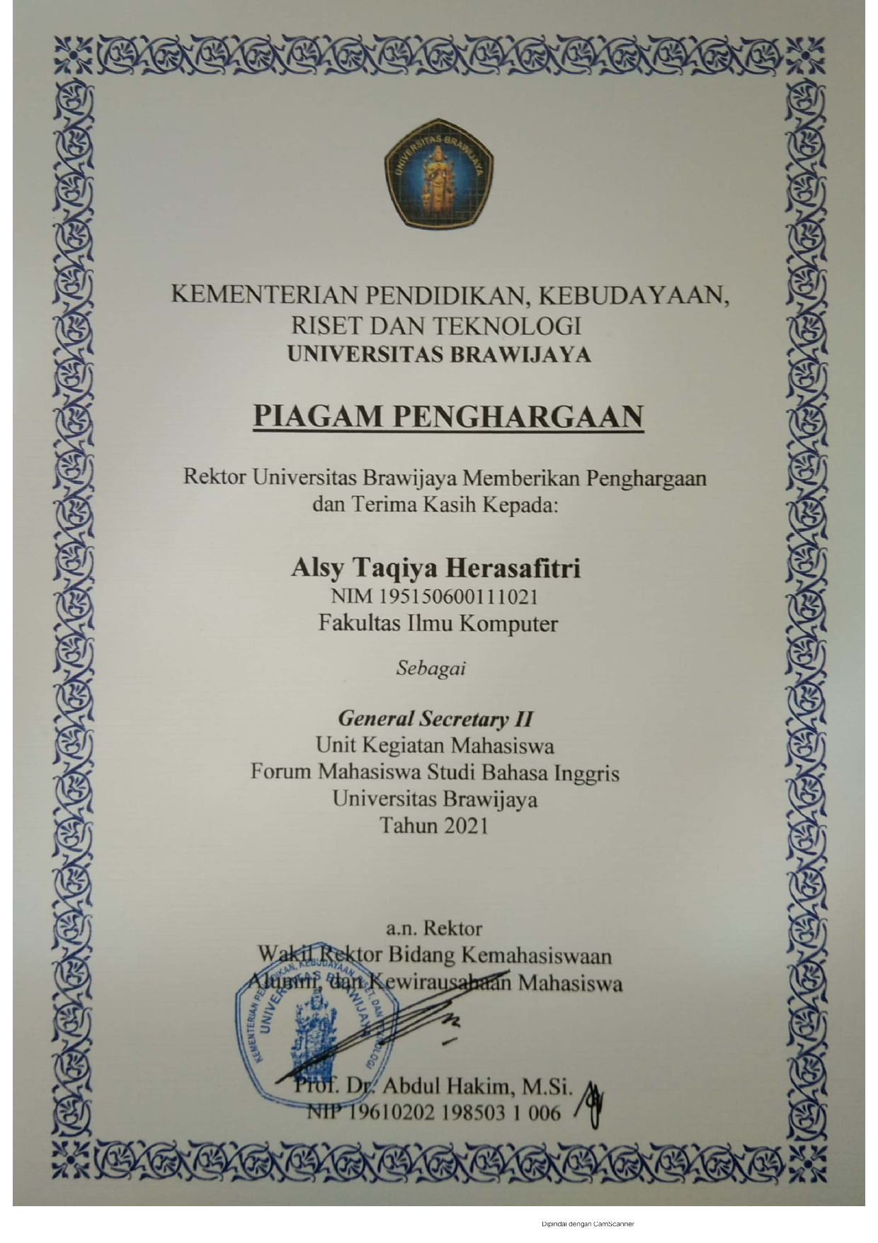 General Secretary II of the 2021 Brawijaya University English Study Student Forum