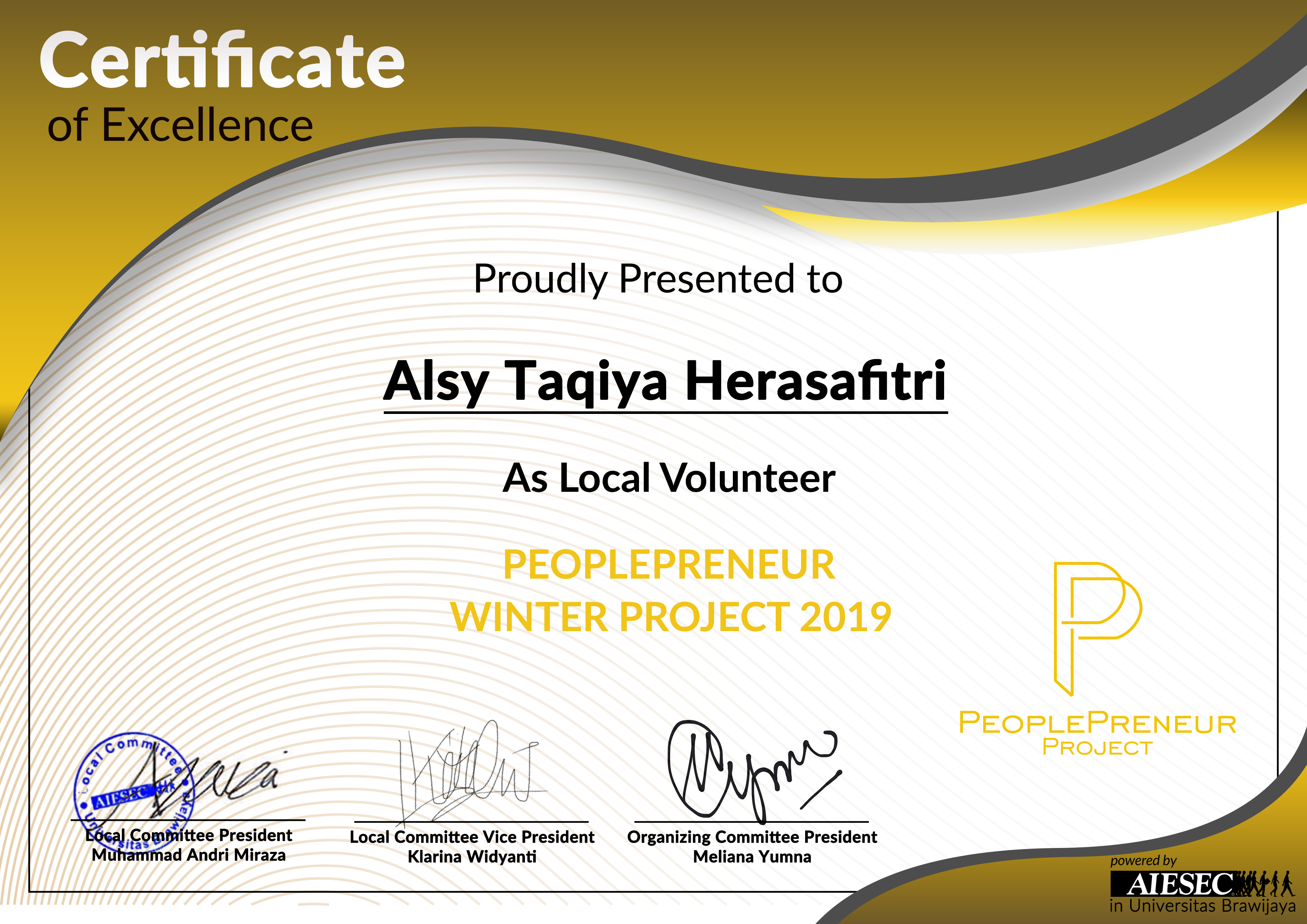 AIESEC Local Volunteeer Peoplepreneur Winter Project 2019